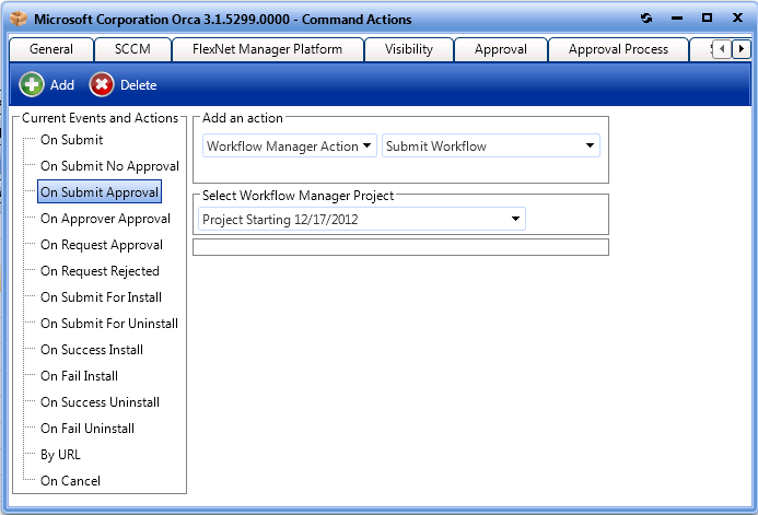 On Submit Approval). - From the Select a service list , select Workflow Manager Action . Automatically, Submit Workflow will be selected from the Select a method or command list.
