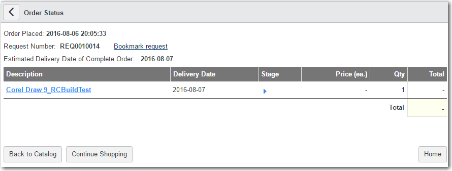 - Click on the  Number  of the request you just submitted. The  Order Status  page is displayed.