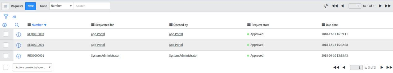 - To view all requests for App Portal catalog items via ServiceNow, do the following: