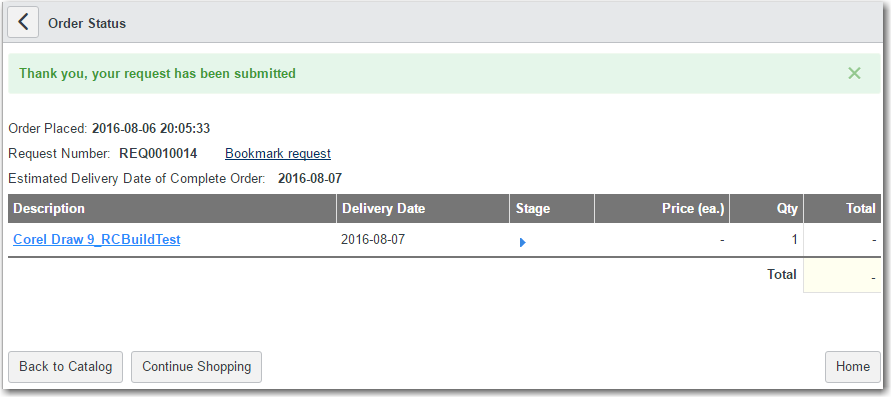 - Click  Order Now . The order is submitted and a confirmation message is displayed.