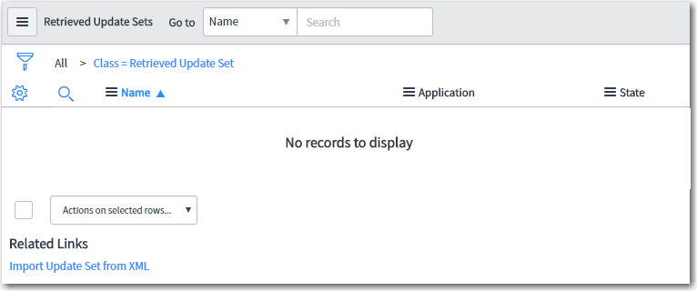 4. In the search results, click Retrieved Update Sets . The Retrieved Update Sets page opens.