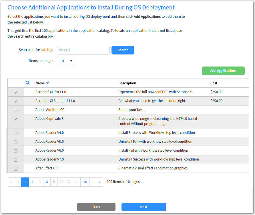 - Select the applications that you want to migrate and then click Next . The Choose Additional Applications to Install During OS Deployment panel opens. Applications that have already been selected in previous panels are already selected and cannot be unselected.