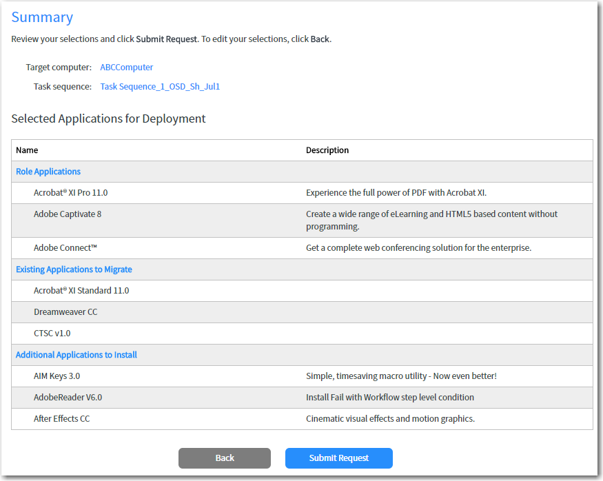 To use the Employee App Provision Request wizard to add a new computer to System Center Configuration Manager and deploy an operating system and applications, perform the following steps.