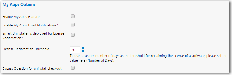 2. Open the Site Management > Settings > Flexera Integration view and locate the My Apps Options area.