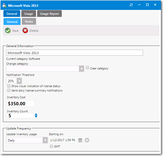 5. Select the Send daily inventory summary notifications option if you wish to include this inventory item in the daily license summary report that is emailed to the License Administrator.